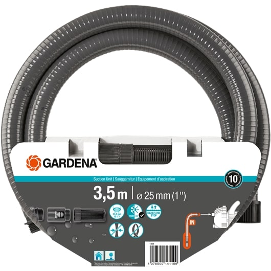 Deze complete, vacuümbestendige en versterkte spiraalslang is direct klaar voor aansluiting op de pomp. Deze slang is ontworpen met een aanzuigfilter om de pomp te beschermen tegen schade door vuil, en heeft ook een terugslagklep om de aanzuigtijd te verkorten. Met een lengte van 3,5 meter en een diameter van 25 mm (1 inch) is deze slang geschikt voor pompen met een buitendraad van 33,3 mm (G 1).