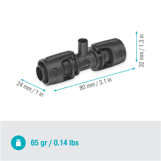 Het T-stuk voor Sproeiers van GARDENA is ontworpen om Sproeiers stevig te vergrendelen in de 13 mm Koppelingsbuis of Druppelbuis van het Micro-Drip-System. Deze set bevat 5 T-stukken, elk met twee in- en uitgangen voor de Koppelingsbuis en één in- en uitgang voor de Sproeier. Bovendien kun je een Verlengbuis aansluiten om vervolgens een Sproeier te bevestigen, waardoor het systeem aanpasbaar is aan de groei van je planten.