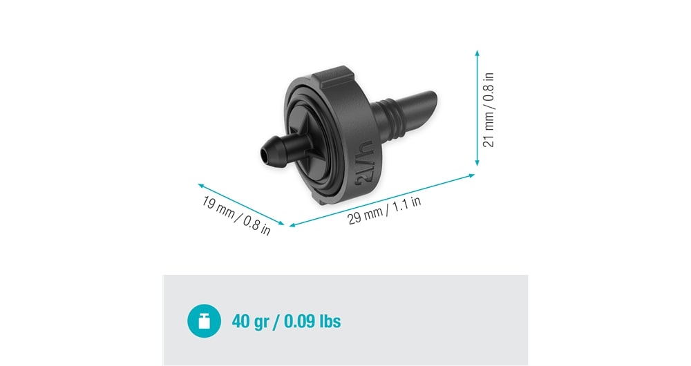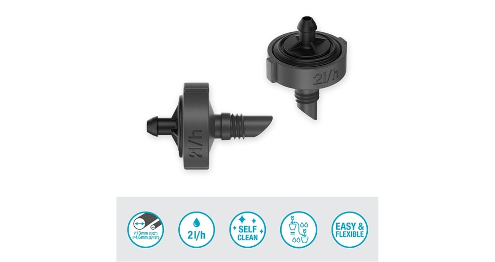De Einddruppelaar is onderhoudsarm en bevat een zelfreinigende labyrinttechnologie om verstopping te voorkomen. De installatie is eenvoudig en probleemloos dankzij de Easy & Flexible-koppelingstechnologie. Hiermee kun je de Micro-Drip-System-onderdelen eenvoudig koppelen, flexibel uitbreiden en net zo makkelijk ontkoppelen. Met het Micro-Drip-System zorg je goed voor je planten, bespaar je water en tijd, en kun je eenvoudig en nauwkeurig bewateren.