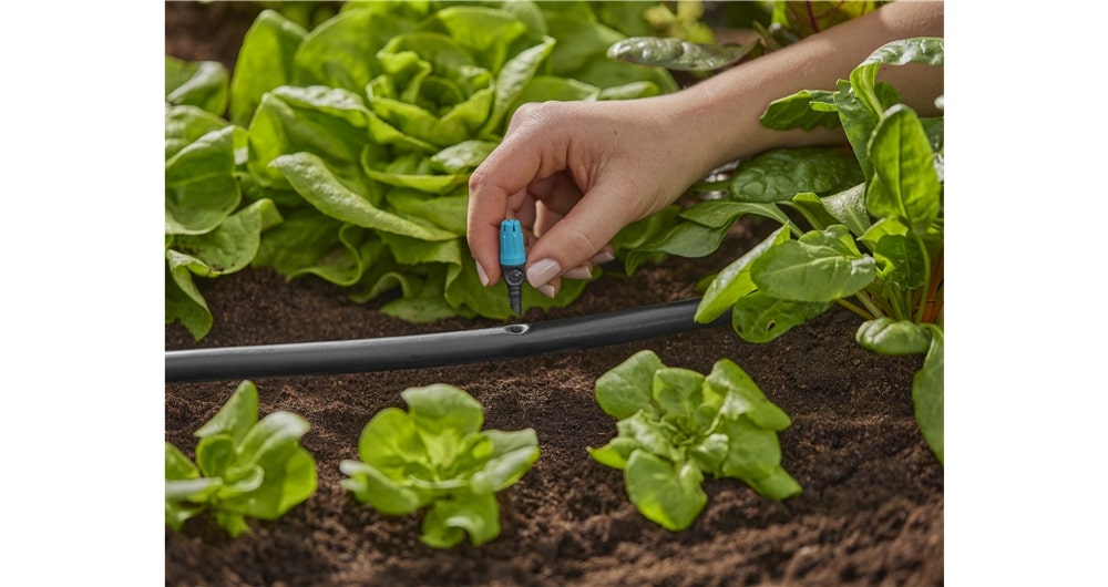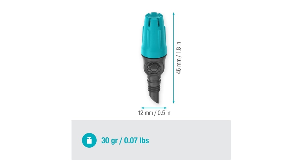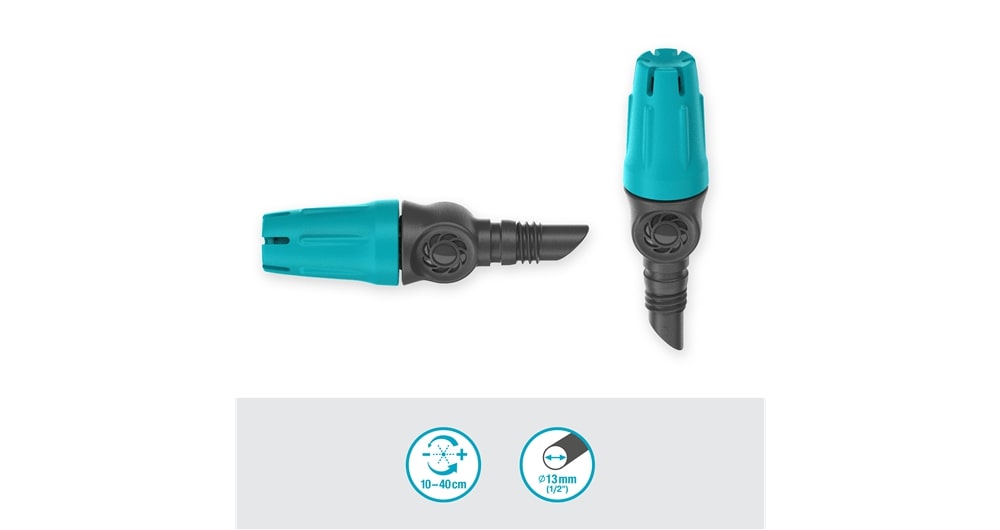 Met de Sproeier voor kleine oppervlakken van GARDENA kun je kleine bloemperken of moestuinen met sla en zaailingen efficiënt bewateren. Voor het bewateren van je planten kun je de sproeibreedte van dit Micro-Drip-System-onderdeel afzonderlijk afstellen tussen 10 en 40 cm. Het is eenvoudig aan te sluiten op de 13 mm Koppelingsbuis, maar je kunt de Sproeier voor kleine oppervlakken ook aansluiten op een T-stuk voor Sproeiers met behulp van het Montagegereedschap.