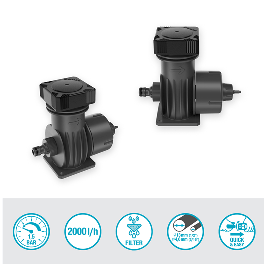 Het Hoofdapparaat 2000 is ontworpen voor veelzijdigheid en kan worden aangesloten op zowel de Microdrip Verdeelbuis van 4,6mm als de Microdrop Aanvoerbuis van 13mm. Dit maakt het geschikt voor diverse configuraties van het Micro-Drip-System, afhankelijk van uw tuinbehoeften. Het gepatenteerde 'Quick & Easy'-aansluitsysteem maakt het eenvoudig om alle onderdelen aan elkaar te koppelen, uit te breiden en los te koppelen.
