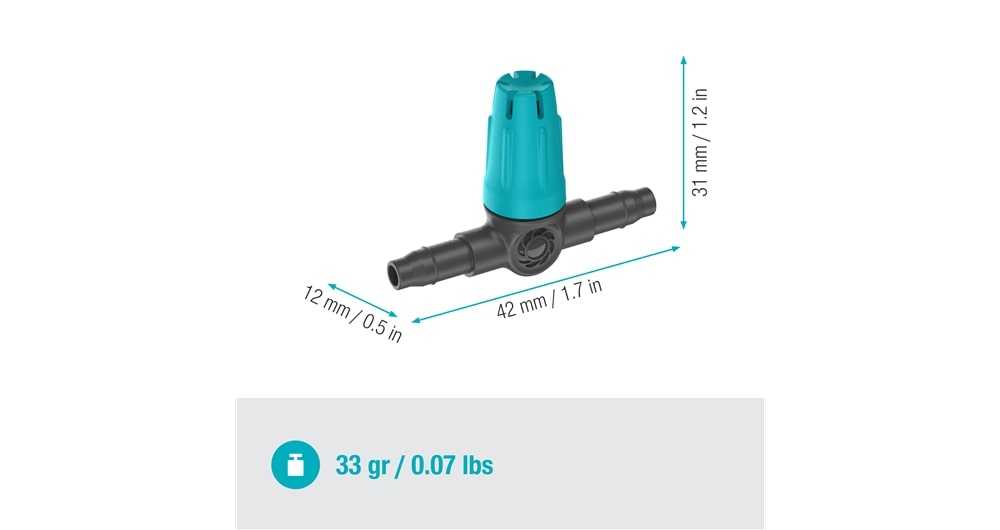 Met de Sproeier voor kleine oppervlakken van GARDENA kun je gemakkelijk kleine oppervlakken met sla, zaailingen of bloemen water geven. Voorafgaand aan gebruik stel je de sproeibreedte van dit Micro-Drip-System-onderdeel in, variërend tussen 10 en 40 cm. Hierdoor is de sproeier ideaal voor het bewateren van planten die verschillende sproeibereiken vereisen.