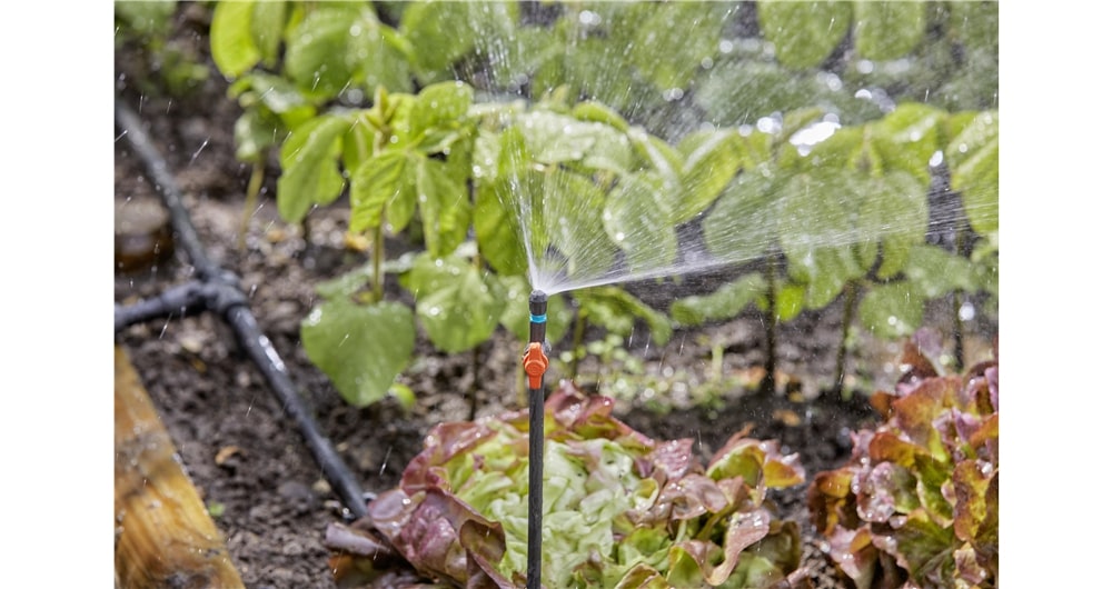 Met de GARDENA Sproeier 90° kun je je planten op betrouwbare wijze bewateren, zelfs tot in de hoeken en randen van de perken. Dit Micro-Drip-System-onderdeel voorziet je moestuin en bloembedden van een fijne sproeinevel over een gebied van 90°, ideaal vanaf de hoek van de perk. Met een bereik van 2,75 meter bewatert de sproeier betrouwbaar een totaal oppervlak van 7 m².
