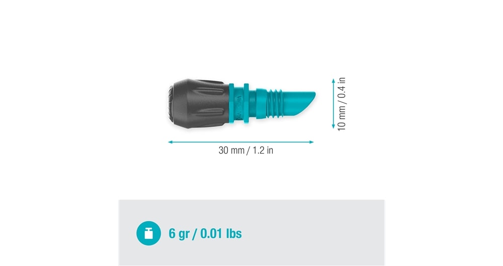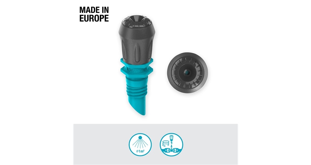 Alle GARDENA Sproeiers zijn duidelijk van elkaar te onderscheiden dankzij het intuïtieve ontwerp, waarbij je het sproeipatroon duidelijk kunt zien op de sproeikop. Dit hoogwaardige product is vervaardigd in Duitsland en maakt deel uit van het Micro-Drip-System, waarmee je goed voor je planten kunt zorgen terwijl je water en tijd bespaart.