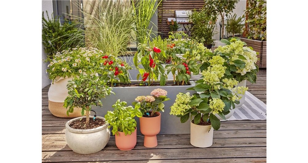 Met de Micro-Drip-Bewatering Terras Set van GARDENA zorg je goed voor je planten, bespaar je water en tijd, en geniet je van een prachtig groen terras.