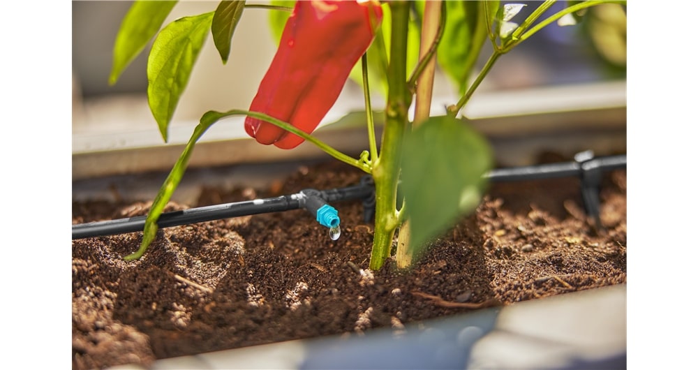 De Master Unit 1000, de startmodule van het Micro-Drip-System, regelt de waterdruk tot ongeveer 1,5 bar en verdeelt het water gelijkmatig over de aangesloten buizen. Met verschillende druppelaars in de set kan je voldoen aan de specifieke waterbehoeften van je planten. De verstelbare Endline Drip Heads zorgen voor optimale bewatering, waarbij je het waterverbruik tussen 0 en 15 liter per uur kan instellen.