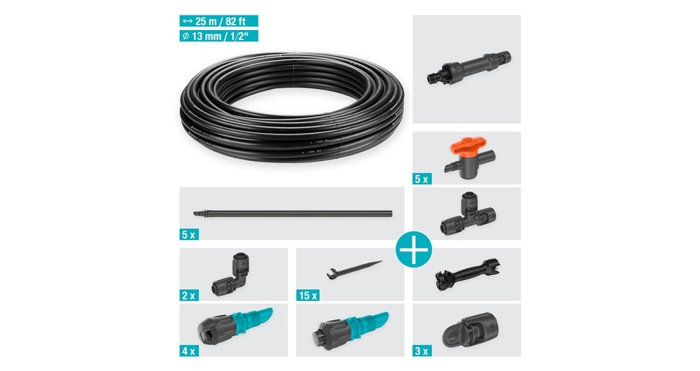 Voor nog meer gemak en eenvoud kan je de set combineren met een GARDENA Besproeiingscomputer, zoals de Select. Hiermee kan je bewateringsprogramma's instellen, zodat je planten automatisch worden bewaterd, zelfs als je niet thuis bent.