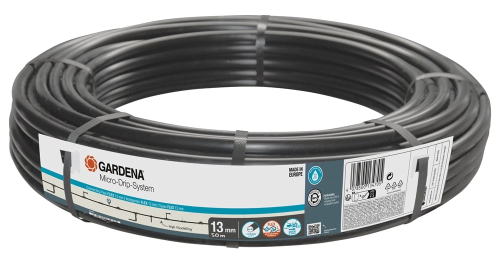 De 50 meter lange Koppelingsbuis / Aanvoerbuis Flex 13mm (1/2") van GARDENA is een essentieel onderdeel van het Micro-Drip-System, waarmee je je planten efficiënt kunt bewateren. Deze buis fungeert als de centrale aanvoerbuis en is voorzien van de unieke Flex-technologie van GARDENA, waardoor hij snel en eenvoudig kan worden geïnstalleerd. De Flex-technologie maakt het mogelijk om de buis zelfs rondom objecten te leggen, waardoor je meer flexibiliteit hebt bij het ontwerpen van je bewateringssysteem.