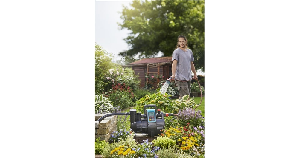 De compacte Automatic Besproeiingspomp 5000/5 LCD van GARDENA heeft een vermogen van 1300 W, een maximale afgiftecapaciteit van 5000 l/u en een maximale druk van 5,0 bar. Deze pomp is perfect geschikt voor zowel mobiel als stationair gebruik. Dankzij de innovatieve geïntegreerde terugslagklep wordt een snelle aanzuiging gegarandeerd, wat zorgt voor een eenvoudige en probleemloze werking, waar je hem ook nodig hebt.
