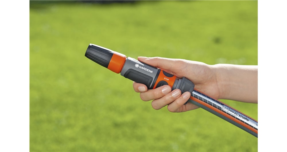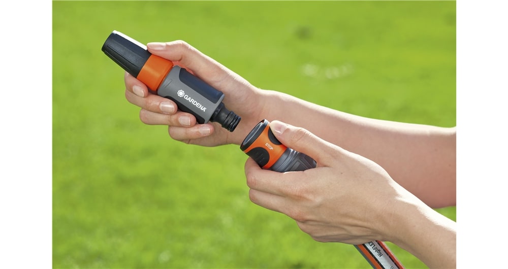 De GARDENA waterstop wordt verbonden aan het einde van de slang. Wanneer het accessoire, zoals een sproeier of broes, wordt ontkoppeld, stopt het water automatisch. Wanneer het accessoire weer wordt aangesloten, loopt het water opnieuw door. U hoeft dus niet meer naar de kraan te lopen om het water af te sluiten en het accessoire te veranderen. De waterstop is ideaal voor slangen van 19 mm (3/4”). Dankzij de POWER GRIP-technologie, met een speciaal gevormde wartelmoer, is een eenvoudige en vaste verbinding gegarandeerd. Het GARDENA slangstuk ligt prettig en veilig in de hand en een rubberen ring biedt extra bescherming voor het product.
