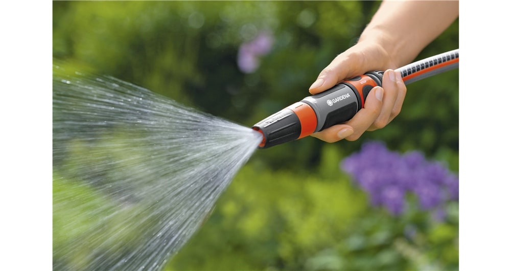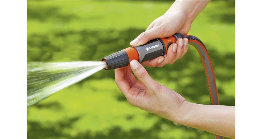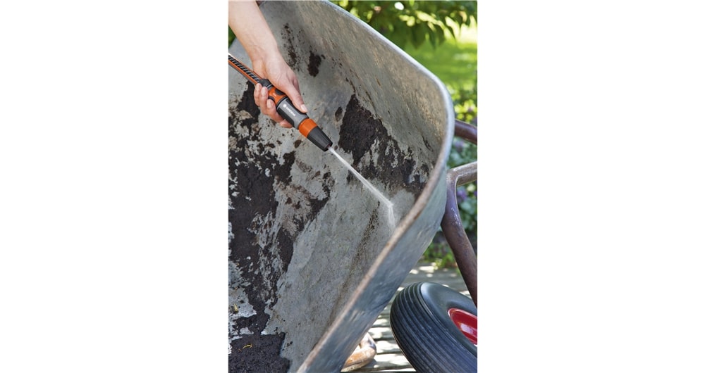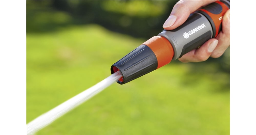 Met de GARDENA tuinspuit kunt u zowel schoonmaken als besproeien, en u kunt eenvoudig de gewenste waterstraal kiezen, of het nu een harde straal of een fijne sproeinevel is. Het spuitstuk zit stevig vast, dus u hoeft zich geen zorgen te maken over het verliezen ervan. Bovendien is de gewenste waterstraal traploos instelbaar, waardoor u volledige controle heeft over de waterdruk. Dankzij de zachte kunststof componenten ligt de tuinspuit prettig en slipvast in de hand, wat het gebruik nog comfortabeler maakt.