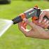 Een zachte kunststofring beschermt het pistool tegen beschadiging. Gebruik de harde straal voor reinigingswerkzaamheden en de fijne nevelstraal voor het besproeien van kwetsbare planten. Wanneer u een constante waterstroom nodig heeft, kunt u de hendel vastzetten, waardoor vermoeidheid van de hand wordt voorkomen.