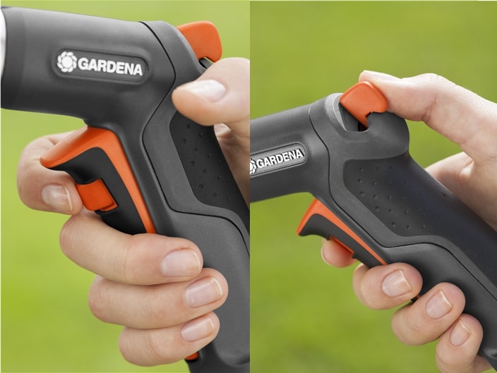 De waterstroom is traploos instelbaar en voor continu gebruik kan de impulshendel worden vastgezet, waardoor handvermoeidheid wordt verminderd. Daarnaast beschikt de Premium reinigingssproeier over geïntegreerde vorstbescherming.