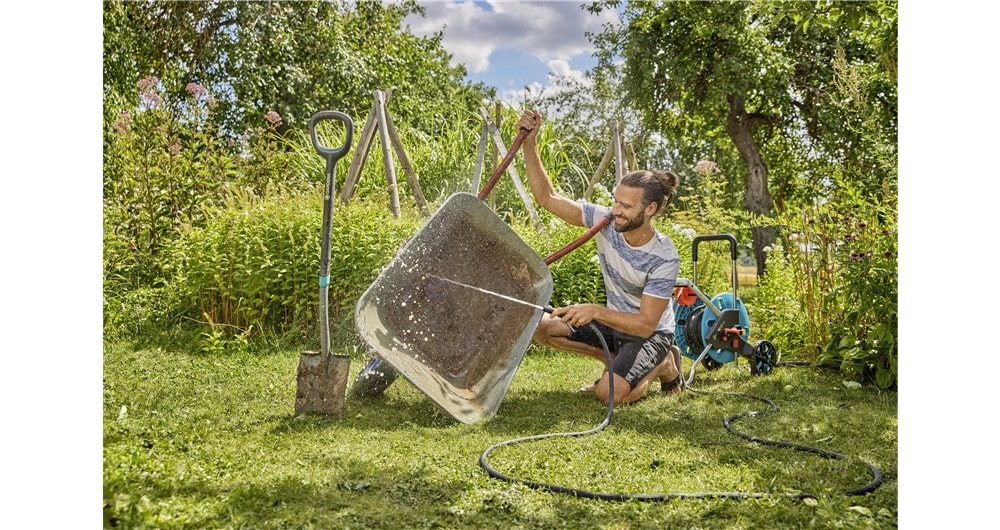De hoge flexibiliteit van de slang is ook handig bij het opbergen, omdat de Liano™ Life zich gemakkelijk aanpast aan de beschikbare ruimte, zoals op een plank of in een hoek van de garage. Dankzij de uv- en vorstbestendigheid kan de slang het hele jaar door buiten blijven. De maximale druk is 22 bar. Bovendien is de Textielslang Liano™ Life vrij van schadelijke stoffen zoals ftalaten, cadmium, lood en barium, waardoor hij veilig in gebruik is.