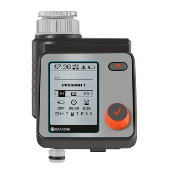 Met de GARDENA besproeiingscomputer Master kunt u de besproeiing uiterst flexibel en op maat instellen. U heeft de mogelijkheid om maximaal zes verschillende, onafhankelijke schema's te maken. Dit apparaat, dat op batterijen werkt en direct op de kraan wordt aangesloten, is eenvoudig te bedienen met slechts een draai- en drukknop om de gegevens te selecteren en te bevestigen. Het volledig grafische display is gemakkelijk leesbaar en toont al uw instellingen in één oogopslag, met de mogelijkheid om het menu in 10 verschillende talen in te stellen.