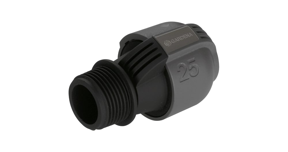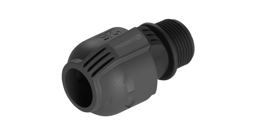 Het GARDENA Verbindingsstuk 25 mm x 1" buitendraad, een onderdeel van het GARDENA Sprinklersystem, zorgt voor de aansluiting van de GARDENA Beregeningsventielen 24V op de leiding. Dit verbindingsstuk maakt het mogelijk om het besproeiingssysteem ook direct op het waterleidingnet aan te sluiten.