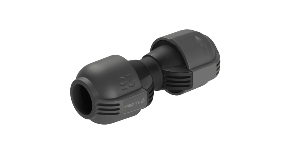 Met het GARDENA Verbindingsstuk 25 mm - als onderdeel van het GARDENA Sprinklersystem - kunt u eenvoudig de aanvoerbuis verlengen. Door de gepatenteerde 'Quick & Easy'-aansluittechnologie kunnen leidingen zonder gereedschap worden gemonteerd en gedemonteerd door de schroefaansluiting 140° te draaien.