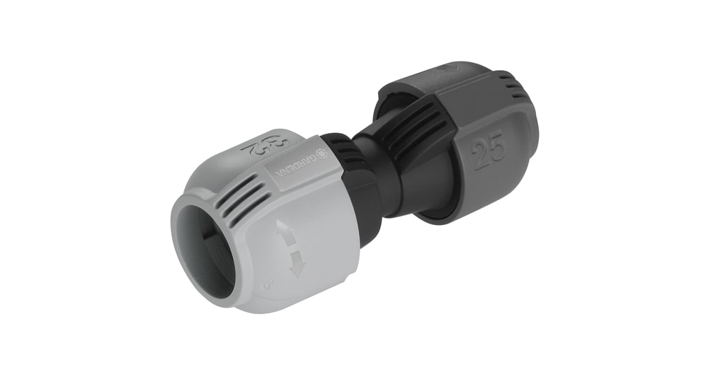 Met het GARDENA Reductie adapter 32 - 25 mm - als onderdeel van het GARDENA Sprinklersystem - kunt u eenvoudig over gaan van een 32 mm buis naar een 25 mm buis. Door de gepatenteerde 'Quick & Easy'-aansluittechnologie kunnen leidingen zonder gereedschap worden gemonteerd en gedemonteerd door de schroefaansluiting 140° te draaien.
