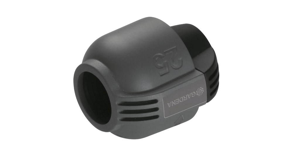 Met het GARDENA Eindstuk 25 mm - als onderdeel van het GARDENA Sprinklersystem - kunt u de aanvoerbuis stevig aansluiten. Door de gepatenteerde 'Quick & Easy'-aansluittechnologie kunnen leidingen zonder gereedschap worden gemonteerd en gedemonteerd door de schroefaansluiting 140° te draaien.
