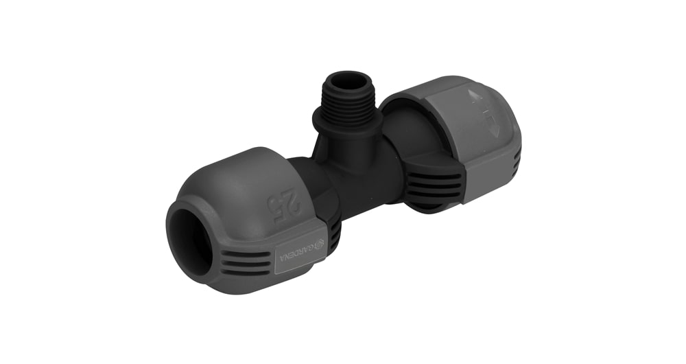 Als onderdeel van het GARDENA Sprinklersystem kunnen met het GARDENA T-stuk 25 mm x 1/2" buitendraad de Verzonken sproeier S 80 (uitlopend, neem contact op voor verkoop) en de Verzonken turbinesproeiers T 100 en T 200 binnen de lengte van de buis worden geïnstalleerd.