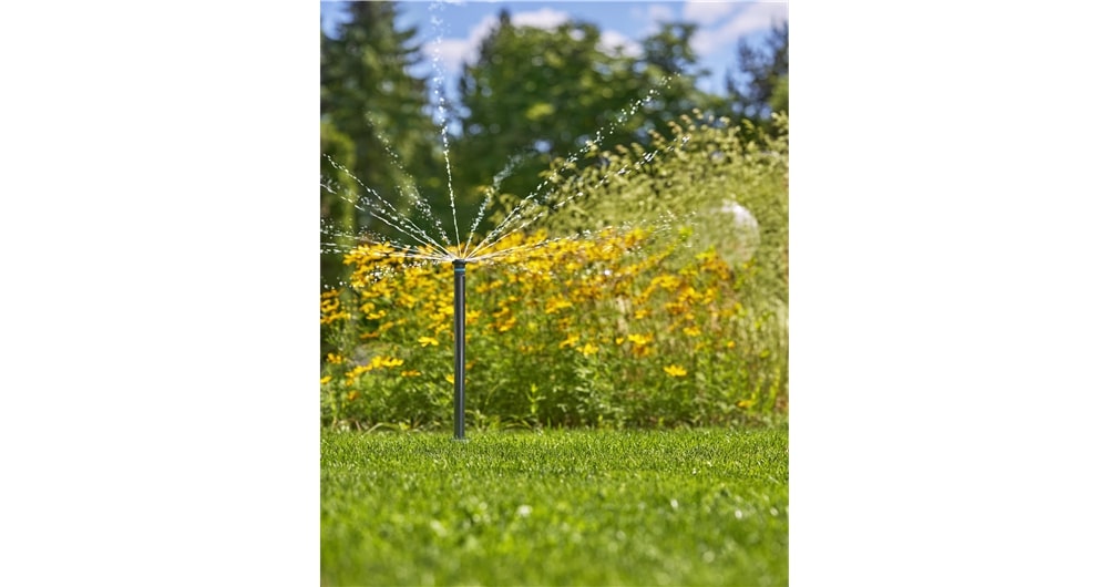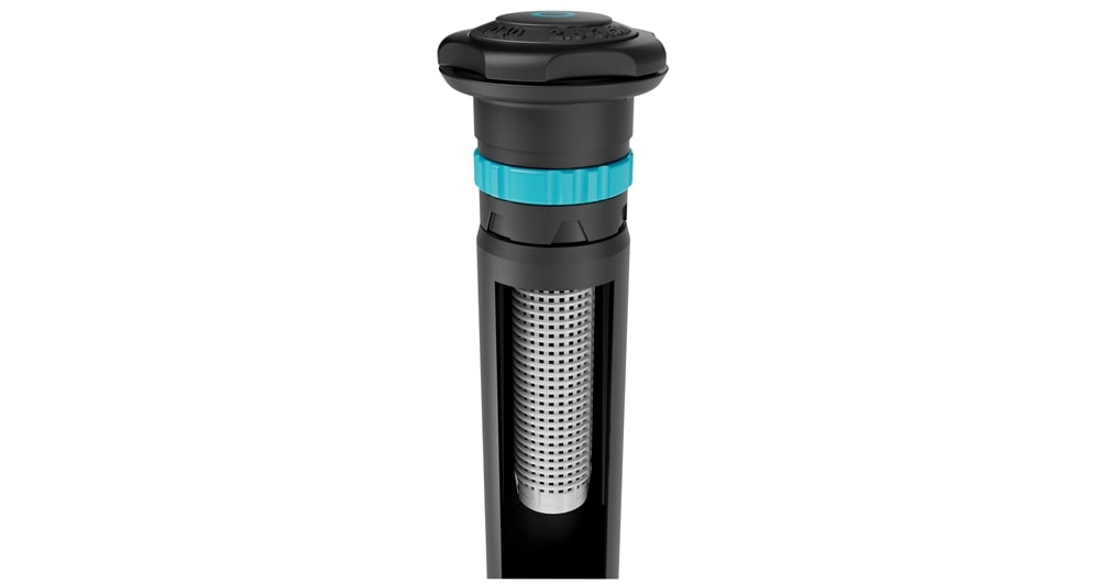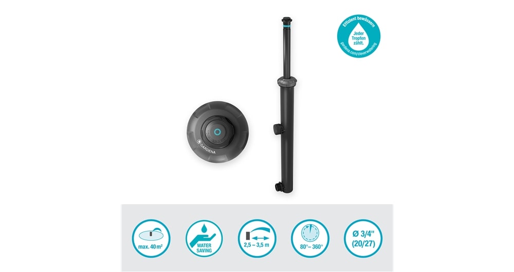 De sprinkler biedt twee verschillende schroefposities aan de zijkant, waardoor de montagediepte kan worden aangepast. Met een externe schroefdraad van 3/4" kan hij eenvoudig worden aangesloten op de Koppelingsbuis met de GARDENA Quick and Easy-koppelingen. Het praktische Double Pop-up System beschermt de sprinkler tegen vuil van buitenaf, terwijl het geïntegreerde filter de Pop-up Sprinkler effectief beschermt tegen vuil.