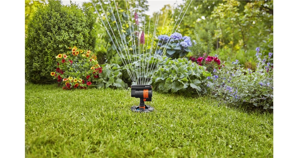 De Pipeline Zwenksproeier van GARDENA sluit naadloos aan op de GARDENA Pipeline. Met een enkele klik kan de Zwenksproeier worden aangesloten op een Waterverdeler, waarna hij uw gazon, planten of groentetuin besproeit. De waterdoorvoer en intensiteit kunnen naar de behoeften van uw tuin worden geregeld en aangepast. Met de regelknoppen kunt u zowel het bereik (3–18 meter) als de sproeibreedte (3–12 meter) flexibel instellen. De sproeikop kan ook handmatig 360° worden gedraaid.