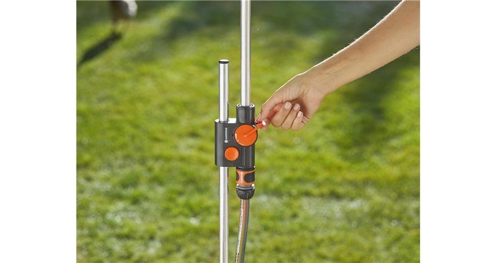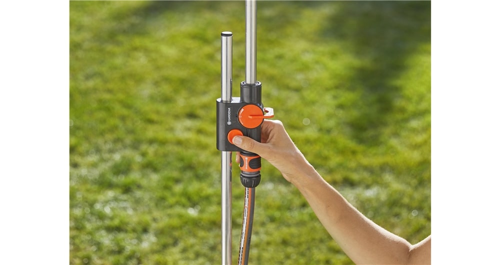 De GARDENA tuindouche solo biedt verfrissing op hete dagen. Met de spike kan de tuindouche eenvoudig in het gazon of in een parasolhouder op het terras worden geplaatst.