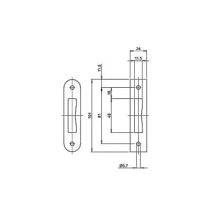 Sluitplaat rechthoekig tbv schuifdeurslot