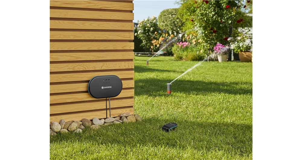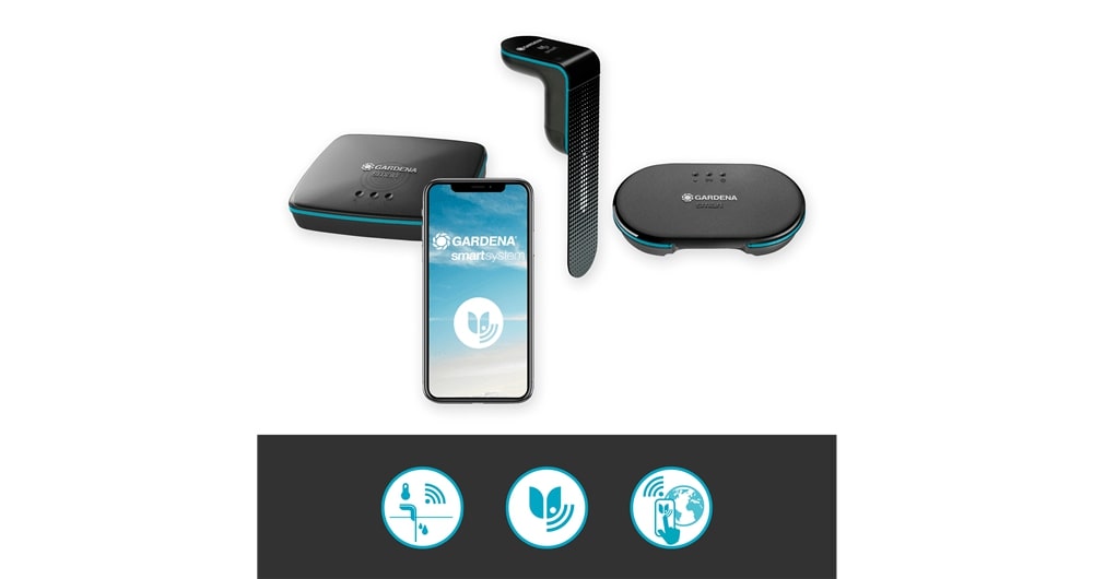 De smart Irrigation Control Sensor Set van GARDENA bedient een bewateringssysteem tot wel 6 beregeningsventielen, waardoor de afzonderlijke, volledig automatische en vraaggerichte bewatering van 6 tuinzones mogelijk is. De set bevat de smart Irrigation Multi-channel besturing, een smart Sensor en de smart Gateway.