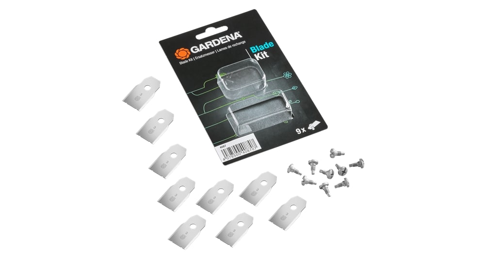 De verpakking bevat 9 reservemessen en 9 bevestigingsschroeven voor de GARDENA robotmaaier R40Li. Deze maait met drie vlijmscherpe mesjes die op een maaischijf zijn bevestigd. Om gezond gras en een uitstekend maairesultaat te behouden, is het essentieel dat de mesjes regelmatig worden gecontroleerd en indien nodig worden vervangen vanwege slijtage. Bij het vervangen van de messen is het belangrijk om handschoenen te dragen en ervoor te zorgen dat de hoofdschakelaar is uitgeschakeld. Met deze set kunt u de messen drie keer vervangen, waardoor uw robotmaaier optimaal blijft presteren.