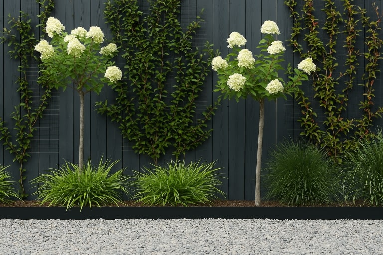 Deze uitvoering in verzinkt staal is voorzien van een beschermende zinklaag en een duurzame poedercoating in grafietzwart (RAL 9011). Deze afwerking geeft een strakke, moderne uitstraling en past perfect bij eigentijdse tuinen.