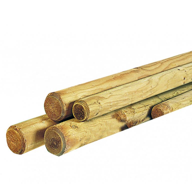 Grenen ronde boompaal Ø4x200cm cilindrisch gefreesd 1 zijde gepunt 1 zijde gekroond, groen geïmpreg