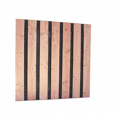 Douglas fijnbezaagd plankenscherm met zwarte binnenkant, 15-planks 19 mm, 180x180cm, zwart/onbeha