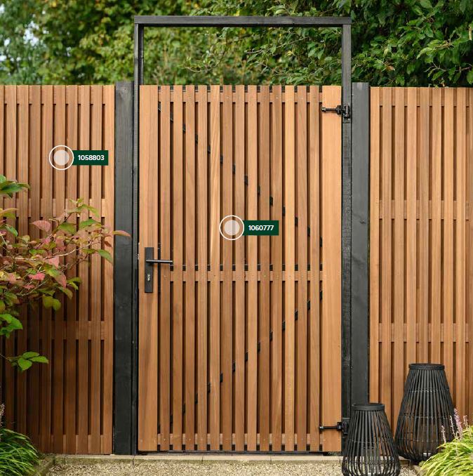 Te combineren met de Thermovision ayous lattendeur met horizontale (1060778) of verticale latten. Werk het geheel strak af met de bijpassende aluminium afdekkap.