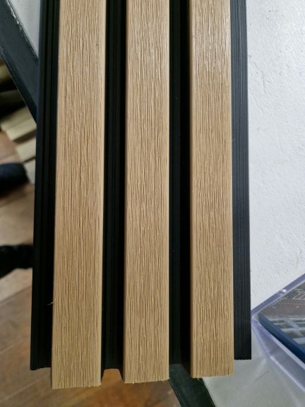 Hout-kunststof composiet. Kleur Red Cedar met zwarte kleur als achtergrond.