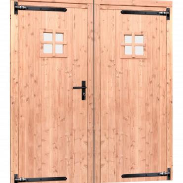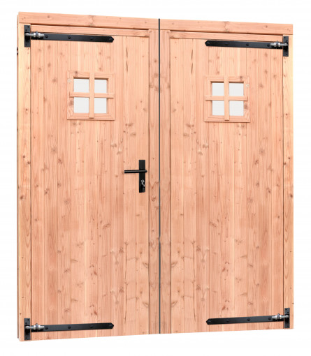 Douglas dubbele 1-ruits deur inclusief kozijn. 168x201 cm, transparant gespoten.