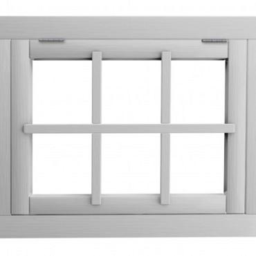Vuren 6-ruits uitzetraam. 91x70 cm, lichtgrijs gespoten.