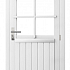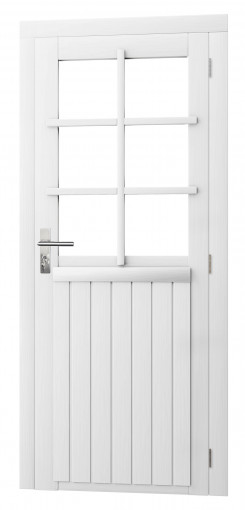 Vuren enkele 6-ruits deur inclusief kozijn, rechtsdraaiend. 90x201 cm, wit gespoten.