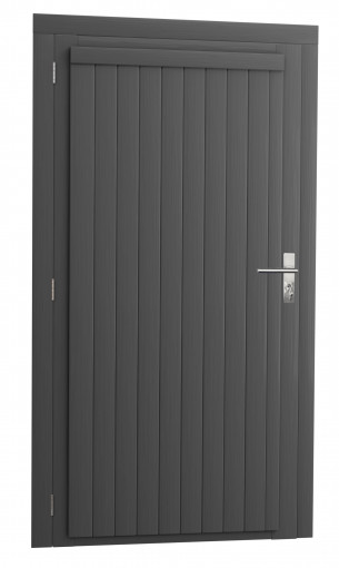 Vuren enkele dichte deur extra breed inclusief kozijn, linksdraaiend. 112x201 cm, antraciet gespot