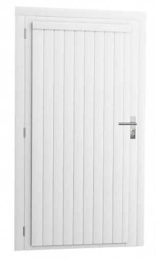 Vuren enkele dichte deur extra breed inclusief kozijn, linksdraaiend. 112x201 cm, wit gespoten.
