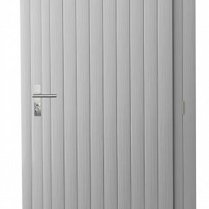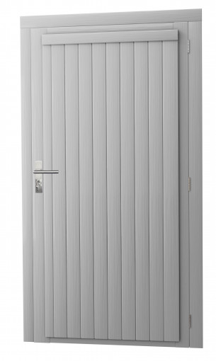 Vuren enkele dichte deur extra breed inclusief kozijn, rechtsdraaiend. 112x201 cm, lichtgrijs gesp