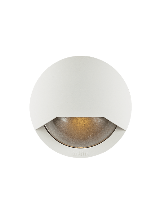 Wandarmatuur in wit gecoat aluminium. BLINK WHITE wordt geleverd met twee lenzen: transparant en mat.