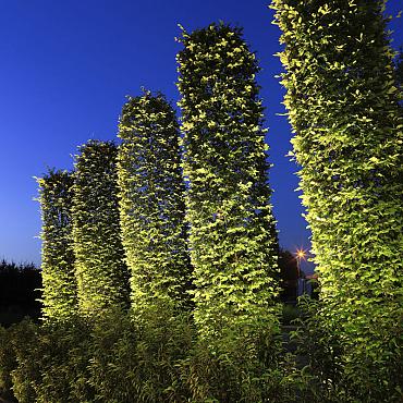 Met het gebundelde licht van LED tuinspot BIG SCOPE NARROW licht je speciale plekken in de tuin uit zoals bomen, struiken, beelden en gevels tot ongeveer 12 meter.