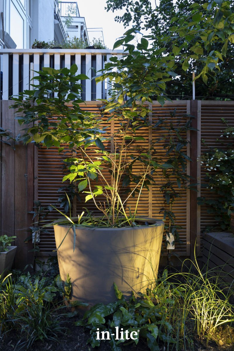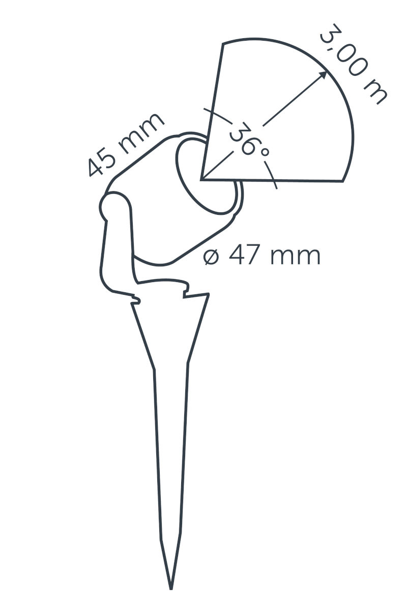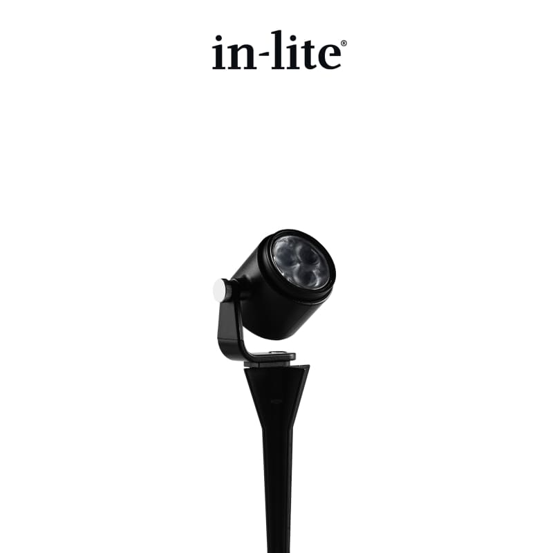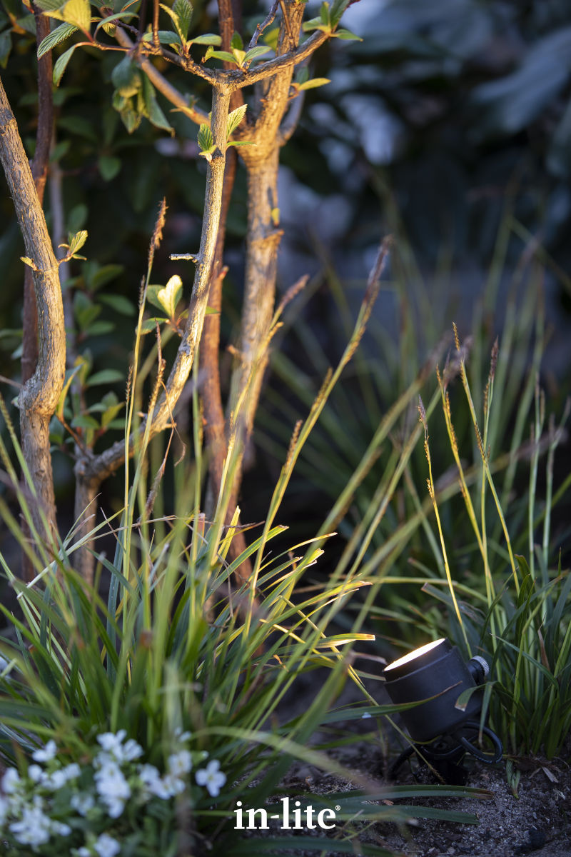 Deze kleine spot wordt standaard geleverd met een beugel en grondpen.