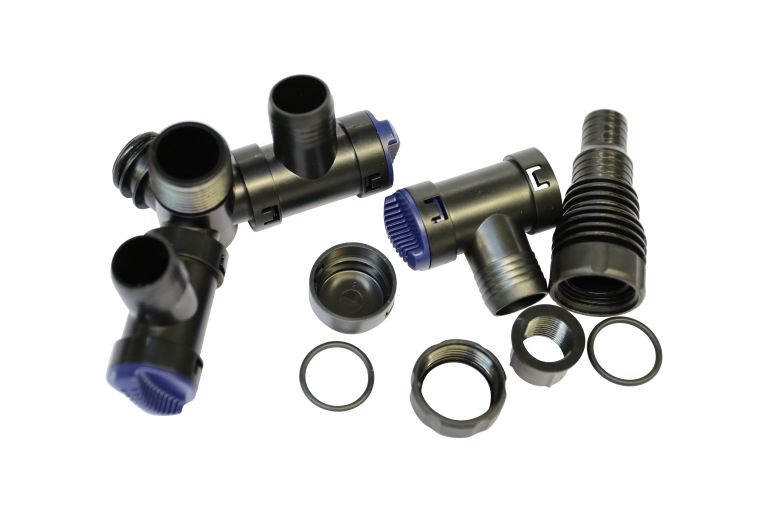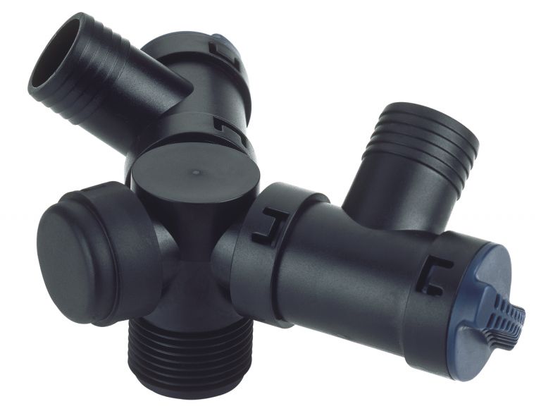 Dit product is ontworpen voor een optimale samenwerking tussen de pomp, slangen en waterafvoer, met een tweevoudige verdelerfunctie. Met de bijgeleverde sluitdop kan, indien nodig, een van de drie verdeleropeningen worden afgesloten. De inlaat is voorzien van zowel ¾" tot 1½", en de drie uitgangen hebben elk 1".
